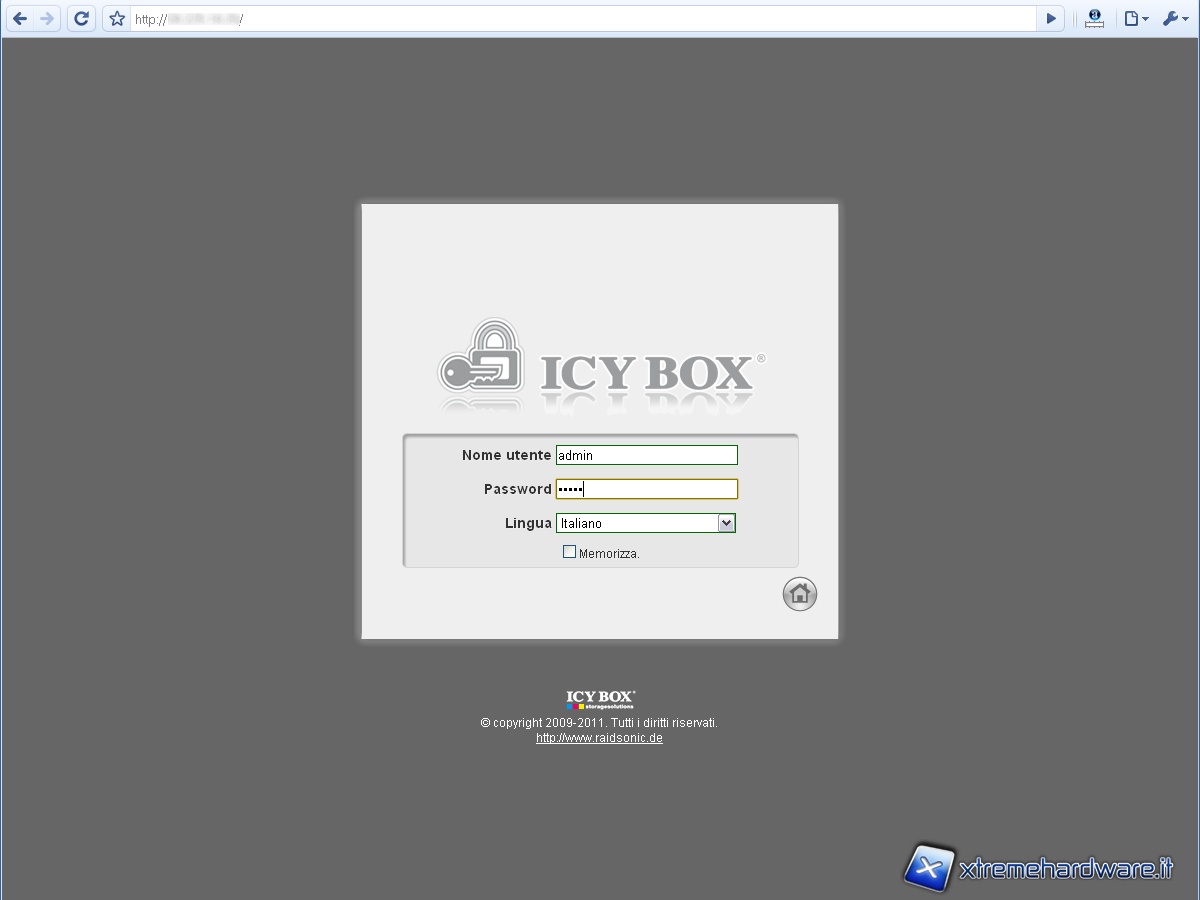 Posizioniamo l’hard disk all’interno di un vano e inseriamolo nell’Icy Box IB-NAS6220. Accendiamo il NAS ed effettuiamo il login inserendo nel browser l’indirizzo IP assegnato all’ IB-NAS6220 dopo averlo collegato alla rete.
