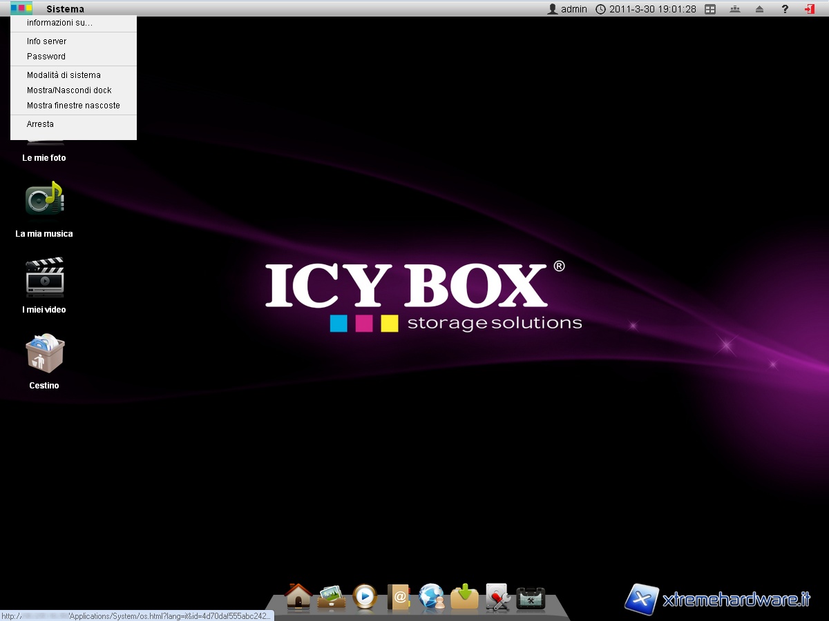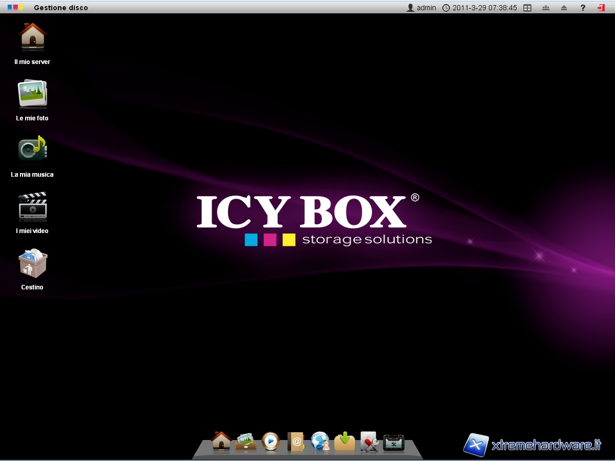 Una volta effettuato l’accesso e formattato il disco, ci troviamo di fronte al “desktop manager” del nostro Icy Box IB-NAS6220.
