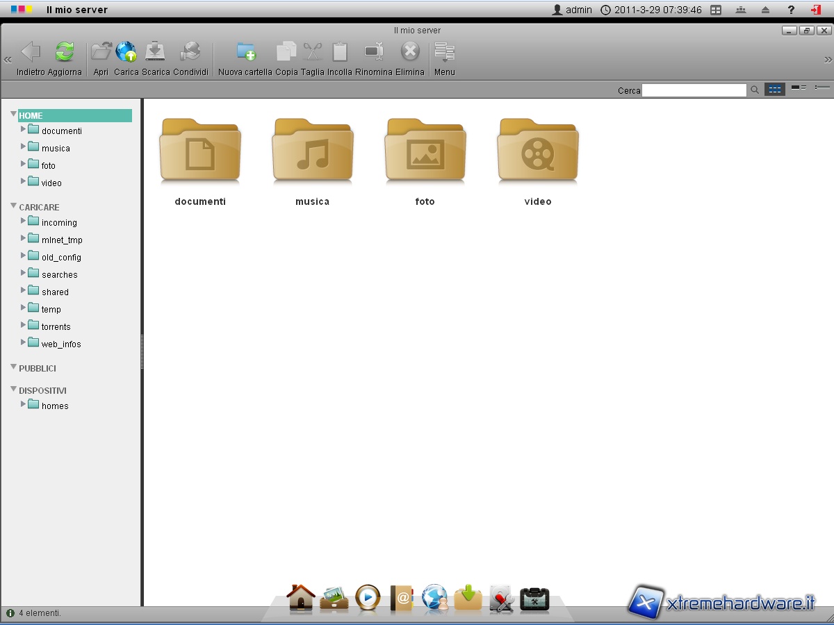Nella pagina che segue vedremo le funzioni e impostazioni che troviamo selezionando le icone presenti nella dock che troviamo nel basso della schermata di gestione del NAS.
