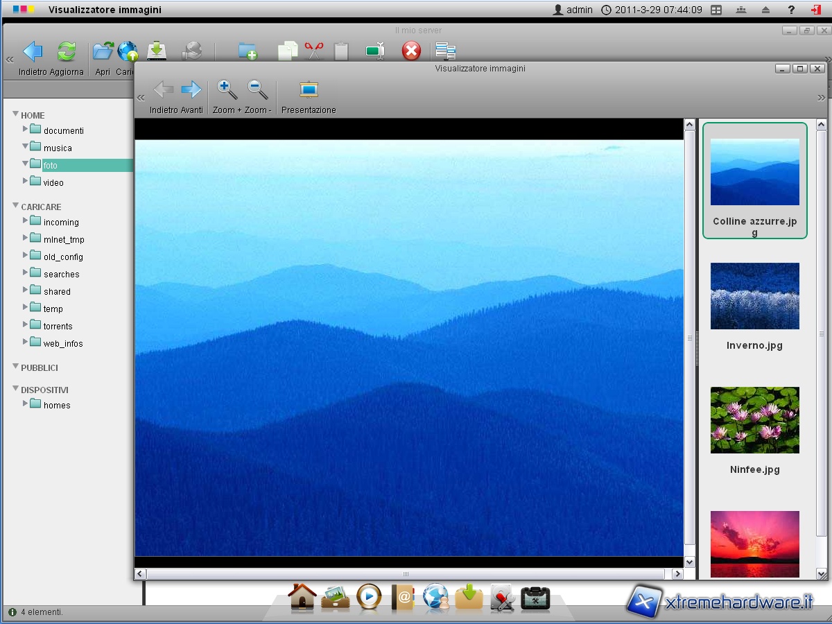 Una volta cliccata sull’icona raffigurante delle piccole fotografie, si apre il menù “il mio server” visualizzante, in questo caso, la cartella delle foto. Cliccando su un’immagine questa si apre per permetterne la visualizzazione, direttamente tramite browser, senza quindi la necessità di doverla scaricare in locale.