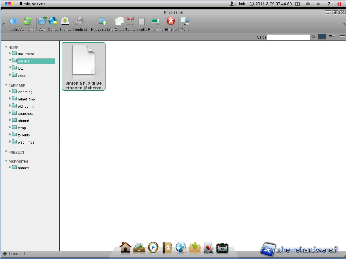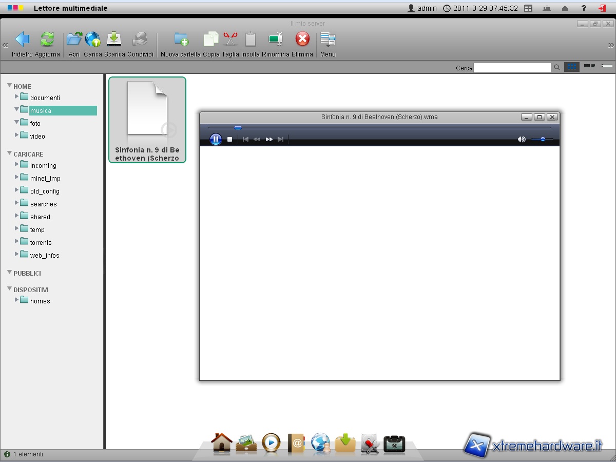 Esattamente per quanto è successo con l’apertura delle immagini, anche in questo caso ci ritroviamo nella finestra “Il mio server” impostato sulla cartella musica. Effettuiamo il doppio click su un file multimediale precedentemente caricato e facciamo partire la riproduzione audio.