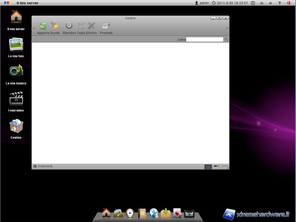 Questa è l’ultima icona che troviamo sul desktop del manager del nostro NAS RaidSonic. Come per tutti i sistemi operativi, cliccando due volte sull’icona del cestino possiamo guardarne il contenuto da eliminare; basterà premere il tasto “svuota” per eliminarne il contenuto.